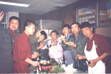| I cannot begin to count the number of times I participated in feasts and celebrations with our Korean counterparts. The unit's mess hall area was not only used for eating, but also for special events and singing. Special meals on site were usually something all troops could enjoy. | |
