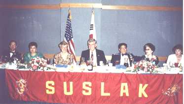As President of SENCO, Senior Non-Commissioned Officers organization, my wife and I were given the honor of being seated at the head table. SUSLAK stands for Special U.S. Liaison Advisor - Korea. We had a ball - literally! |